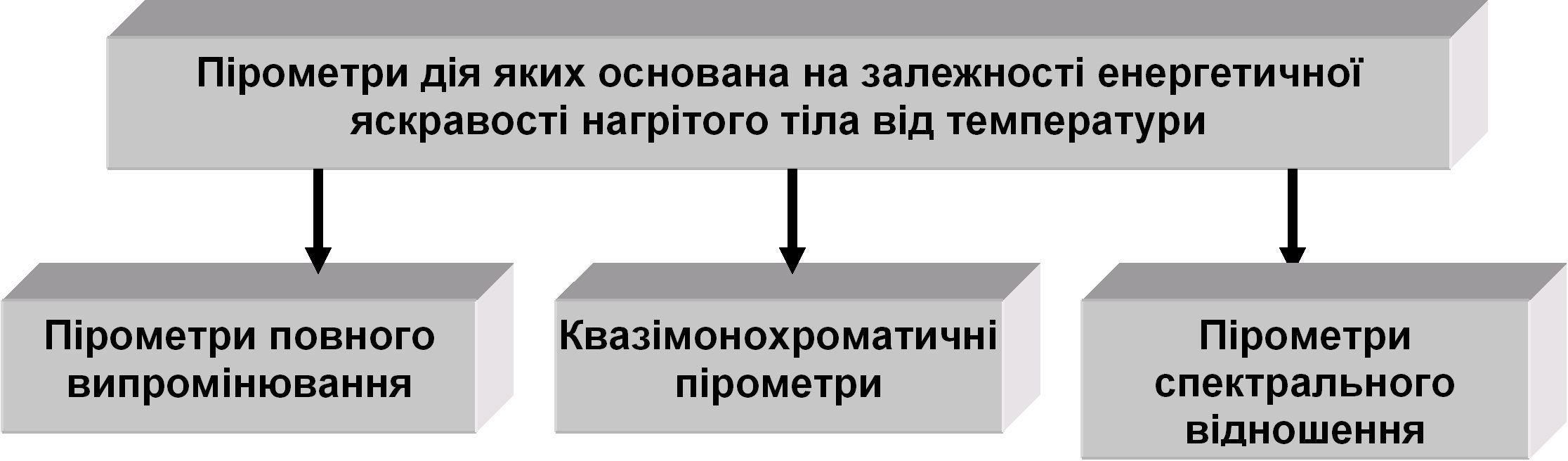 Пірометри це засіб вимірювання температури в основу роботи якого покладене використання теплового електромагнітного випромінювання нагрітих тіл. Перевагою пірометрів є безконтактність вимірювання. Але на результати вимірювання впливають багато факторів, які стримують використання пірометрів. Пірометри використовуються для вимірювання великих значень температури і у тих випадках коли неможливо використовувати контактні методи вимірювання температури.