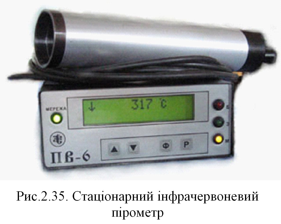 Великого розповсюдження набули інфрачервоневі пірометри (рис. 2.35) принцип дії яких оснований на вимірюванні абсолютного значення амплітуди електромагнітного випромінюваня від об’єкта в інфрачервоне вій частині спектру і наступним перетворенням вимірюваного значення у температуру.